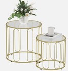 Coffee Table Set of 2 Nest of Tables with Metal Frame, Gold Tone, Tempered Glass