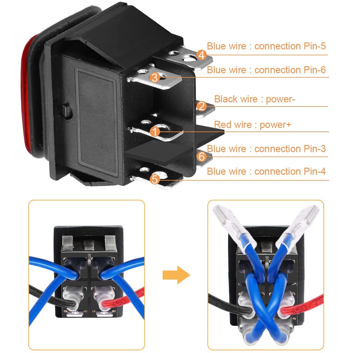 Package Content: 2 pcs rocker switch with wires; 8 pcs wire connectors.