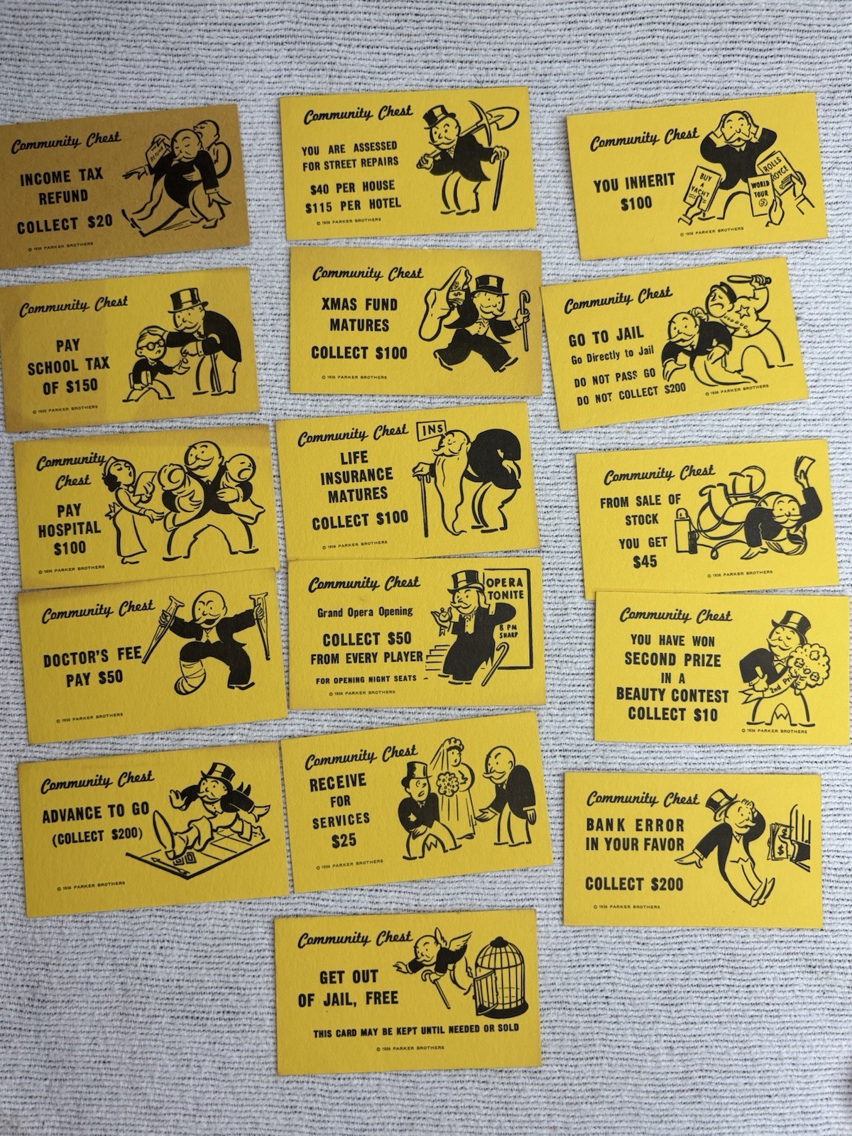 Monopoly Chance and Community Chest Cards - Complete Set