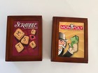 Monopoly and Scrabble Game board lot Wooden Library Book 2005 Complete
