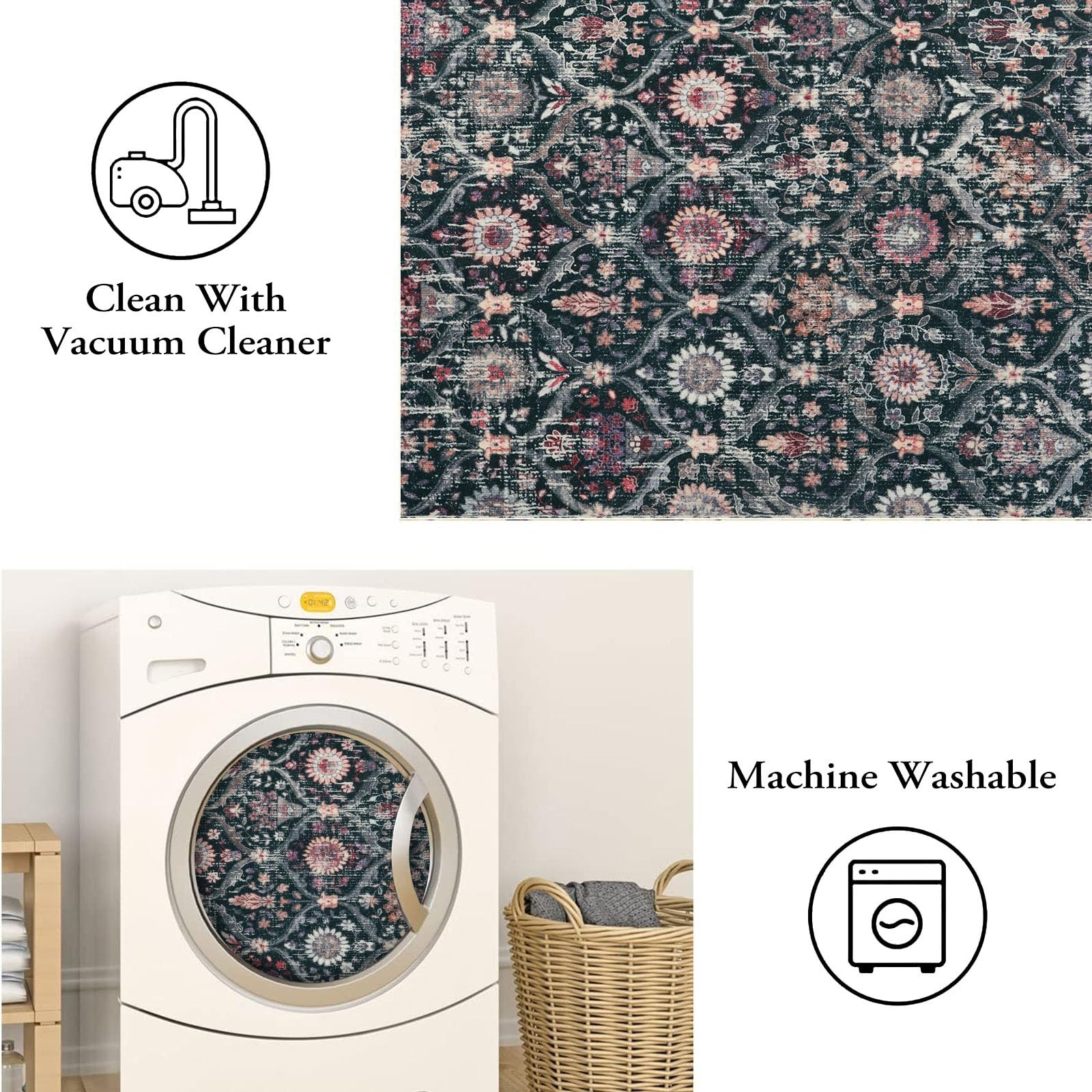 Easy to Clean: Our rug is low-maintenance and easy to clean. Simply vacuum or shake off any dirt or debris, and it will look as good as new.