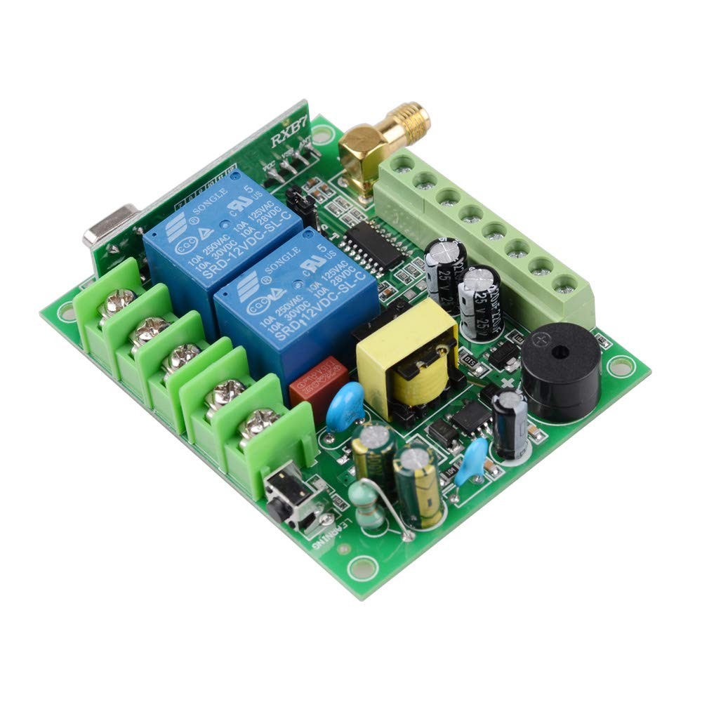 Package Include: 1 x Receiver 2 x Transmitter(Battery included) The Receiver power supply is AC 85V--250V, Output with electric,Equal to input voltage. Receiver With special limit switch and manual control button wiring port. (Notice: Max Load: 10A Relay, have better load less than 5A; have better load less than 500W) The wireless remote control switch adopts radio frequency identification technology. This is a wide voltage 85V-250v 2-Channel wireless remote control switch. it has stable and reliable performance, and has the advantages of simple use, safety and reliability. Signal of the wireless RF switch can pass through walls, floors and doors, steadily control receiver from any place within a reliable distance. Resist Interference:It adopts non-directional wireless encoding technology, allowing independent control without mutual interference. Max range is up to 20--100meters with no obstacle. We have made transmitter and receiver working together and test it before ship it,when you get it don't need to do anything ,just install it. 【Out State】: Momentary Latched Adjusted by the Jumper on the Receiver, ( we ship default as Latched, if you need use Momentary to change the Jumper on the Receiver ) It is a new type of intelligent switch, The wireless remote control switch can control one or more devices in the room. widely used in remote water pump switches, motor, Electric curtain machine, wireless remote control machine switches, wireless remote control sockets,lifting equipment, wireless lamps, window, entrance, Garage Doors,various types of wireless home appliances control and so on.