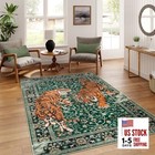 Moynesa Tiger 5x7 Area Rug, Boho Washable Living Room Rug, Non Slip Green Rugs f
