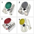 Multi-Color Oval Sugar Druzy Quartz Silver Plated Hammer Finish Band Rings
