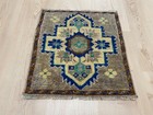 Vintage Square Turkish Rug 1.4 x 1.4 ft Blue Neutral Anatolian Wool Carpet