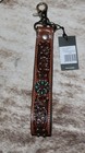 Myra Bag #6427 Key Fob Chain 1" x 6.5" Embossed Leather~Turquoise Concho~Clasp~