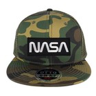NASA Black White Worm Patch Structured Camo Flatbill Trucker Mesh Cap