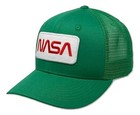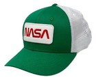 NASA Worm Insignia Structured Space Mesh Trucker Baseball Cap Hat - Green White