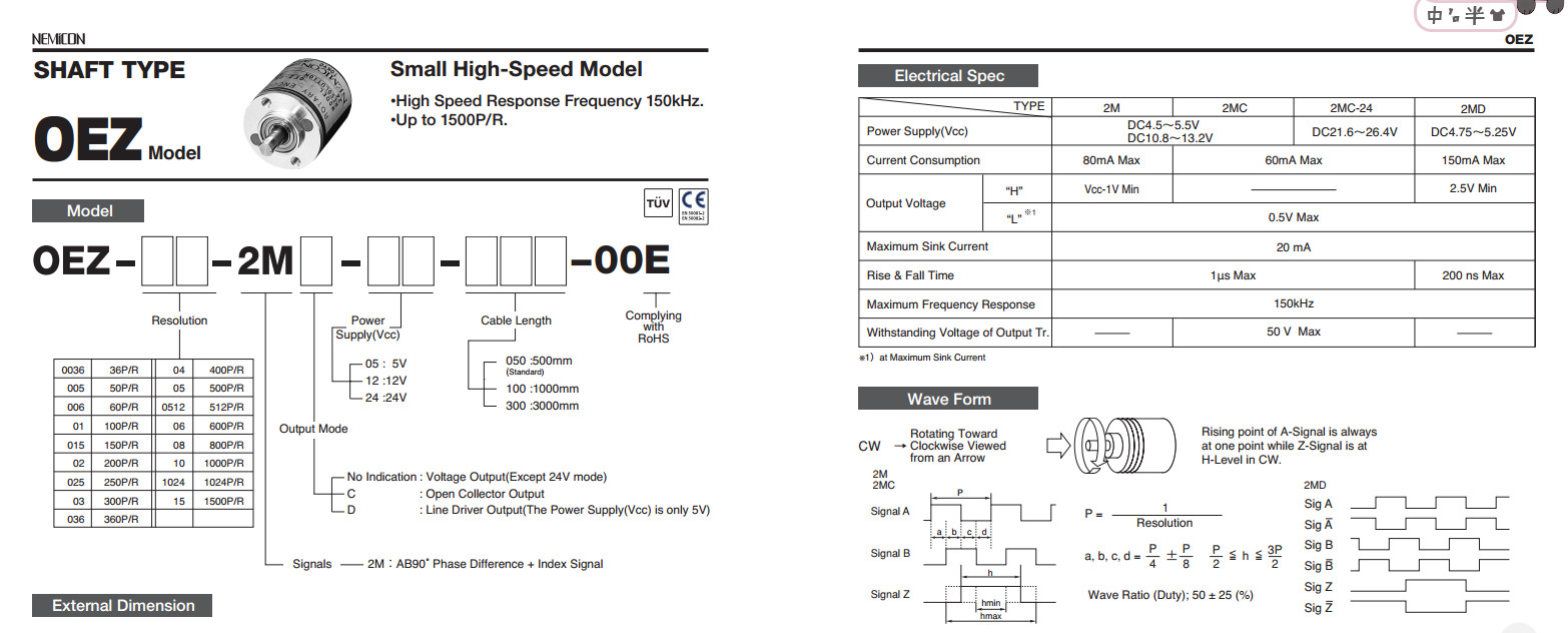 NEMICON OEZ-25-2MD Encoder 250P/R New