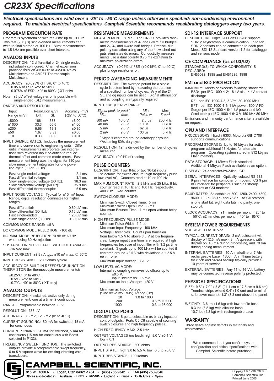 Fully tested (bench report included), new battery, latest OS (CR23X_STD_19.OBJ), and a 30 day Warranty