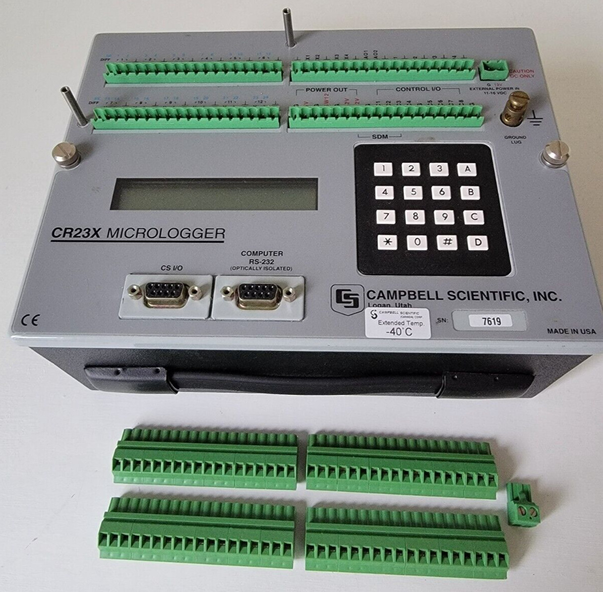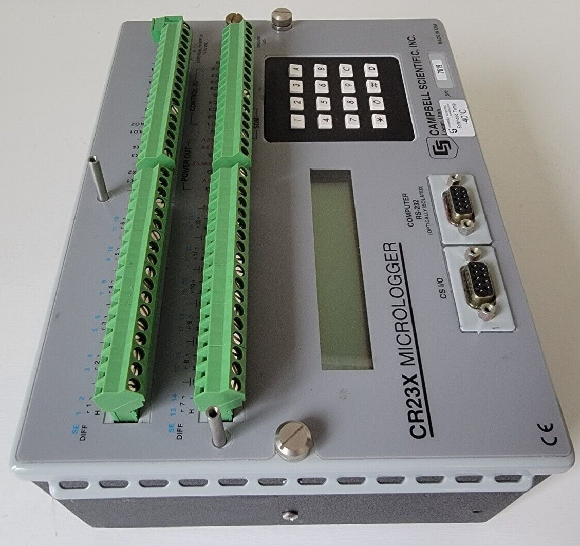 To my knowledge, these are the only CR23X being sold on eBay that have been tested, are completely refurbished and include a warranty (30 days from date of sale). Each CR23X has been updated with the latest available Campbell Operating System. This Micrologger is certified to be working within the original factory specifications of ±0.1% of the full scale range. The internal lithium ion battery and desiccant packs have been replaced. The refurbishing and certification process is critical for accurate measurements, and credible, reliable data.