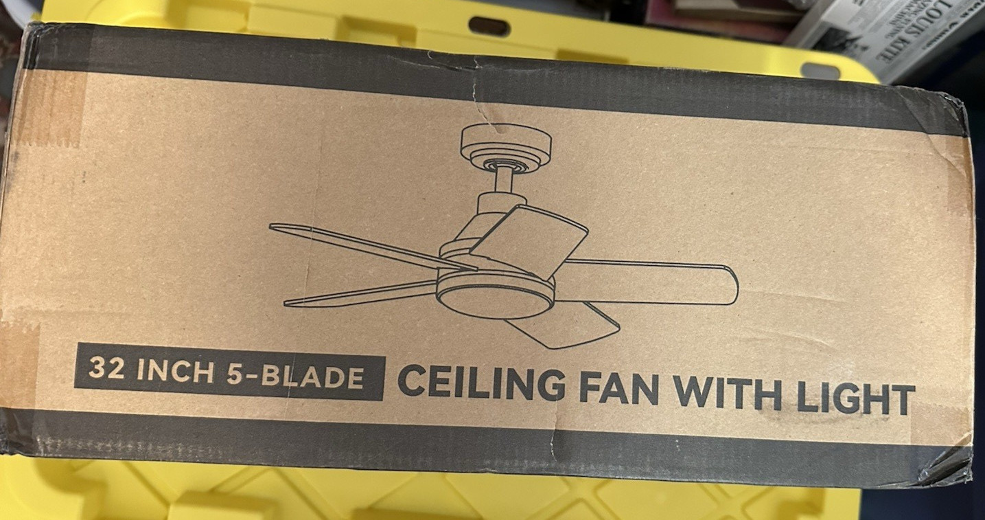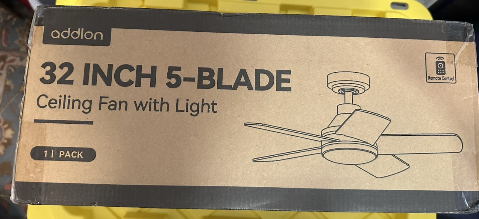 NEW Addlon White 42 Inch 5-Blade Flush Mount Ceiling Fan w/Light & Remote Control. New in unopened box, stock product photo is shown.