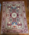 3' 4 3/4" x 5' 1/2" Wool & Cotton, Hand Knotted, Dark Red, Blue, Orange Area Rug