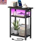 Narrow Side Table with Charging Station and LED Light, Skinny Nightstand with...