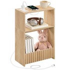 Narrow Side Table with Charging Station, 3-Tier Small End Table with Storage ...
