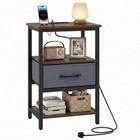 Nightstand Bedside Table with Charging Station and Drawer-Rustic Brown