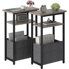 Narrow Side Table Set of 2, Skinny End Tables with Fabric Basket, Small Side ...