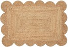 Weaving Cottage Scalloped Natural Jute Area Rug | Beige, 2X3 FT Handwoven Jut...