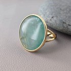 Natural Green Jade Fluorite Stone Ring Gold Plated Adjustable Ring