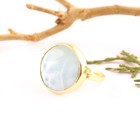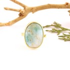 Natural Larimar Statement Ring Yellow Gold Plated Collet Setting Adjustable Ring