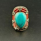Ethnic Tibetan unique handmade design traditional turquoise coral beautiful ring