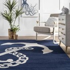 Nautical Anchor Navy Blue Hand-Tufted 100% Wool Soft Area Rug Carpet