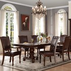 7 PC BROWN CHERRY 103" FORMAL DINING TABLE & 6 FAUX LEATHER CHAIR FURNITURE SET