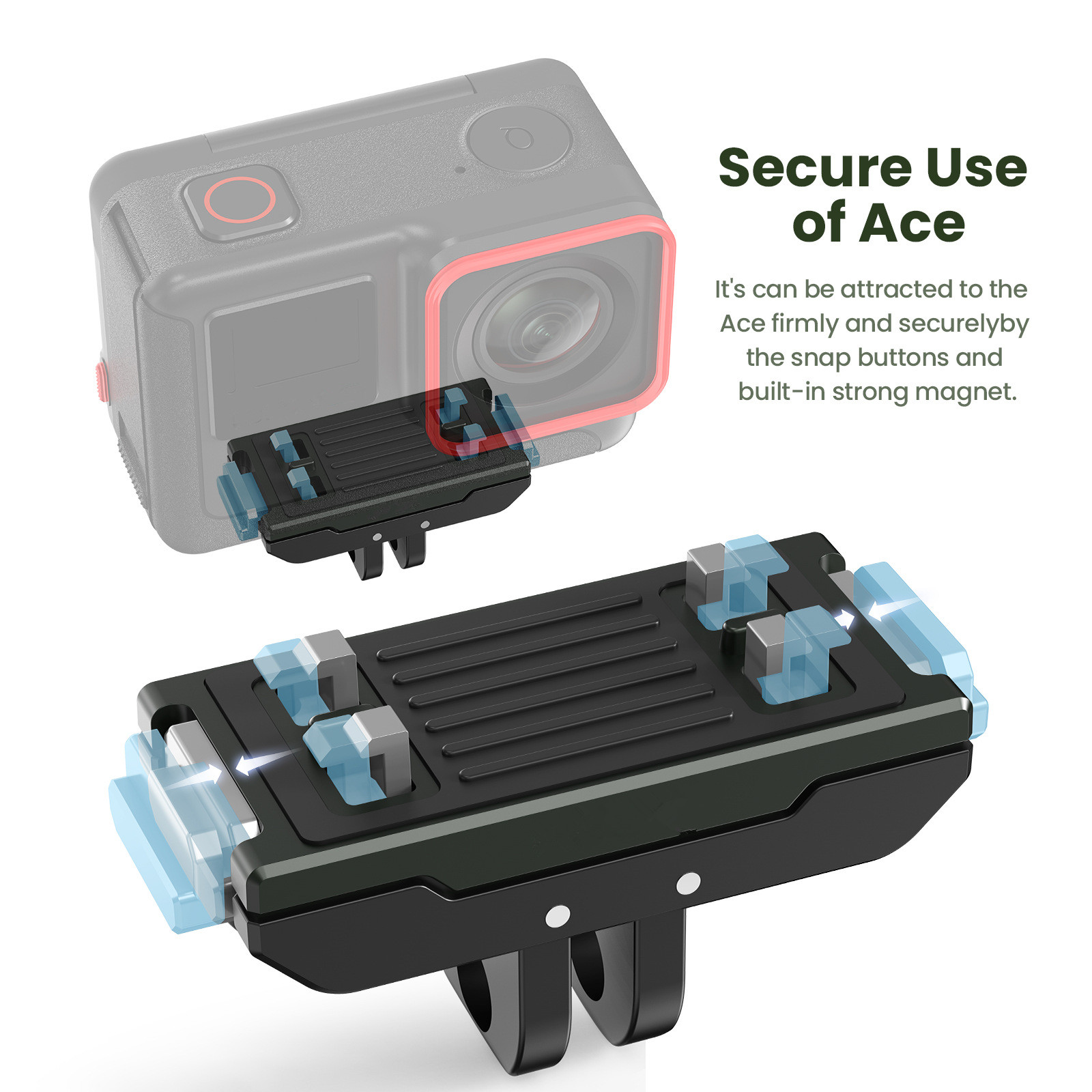 Features: The adapter matched with the quick release mount can seamlessly fit with the for Insta360 Ace Pro /Ace by removing the original folding fingers. The quick release mount can be attracted to the camera instantly with built-in strong magnet, and be detached quickly by pressing buttons on the both sides. It's can be attracted to for Insta360 Ace Pro /Ace camera firmly and securely by the snapbuttons and built-in strong magnet. The shock-absorption silicone sheet further secures the mounting firmness of the quick-release mount.no fear of vibration in cycling The quick release mount is compatible with a variety of accessories with its magnetic folding fingers and 1/4 screw connection.