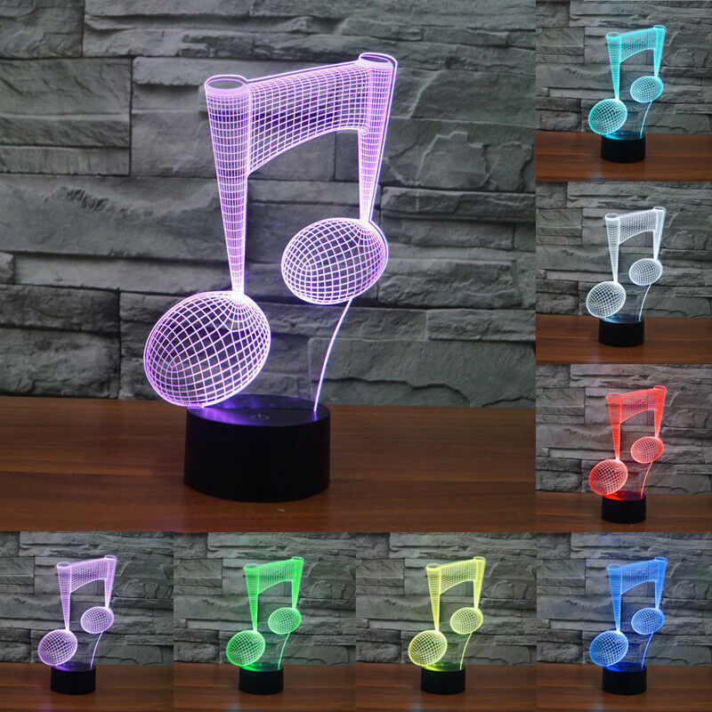 New Music Note 3D LED Night Lights Lamp Multi-Color Acrylic Visual Home Decor B