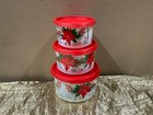 Tupperware Beautiful Christmas Theme New Set/3 Mini One Touch Stacking Canisters
