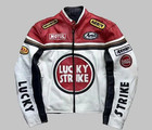 Handmade Vintage Lucky Strike Racing Leather Jacket, Retro Racer Biker Jacket