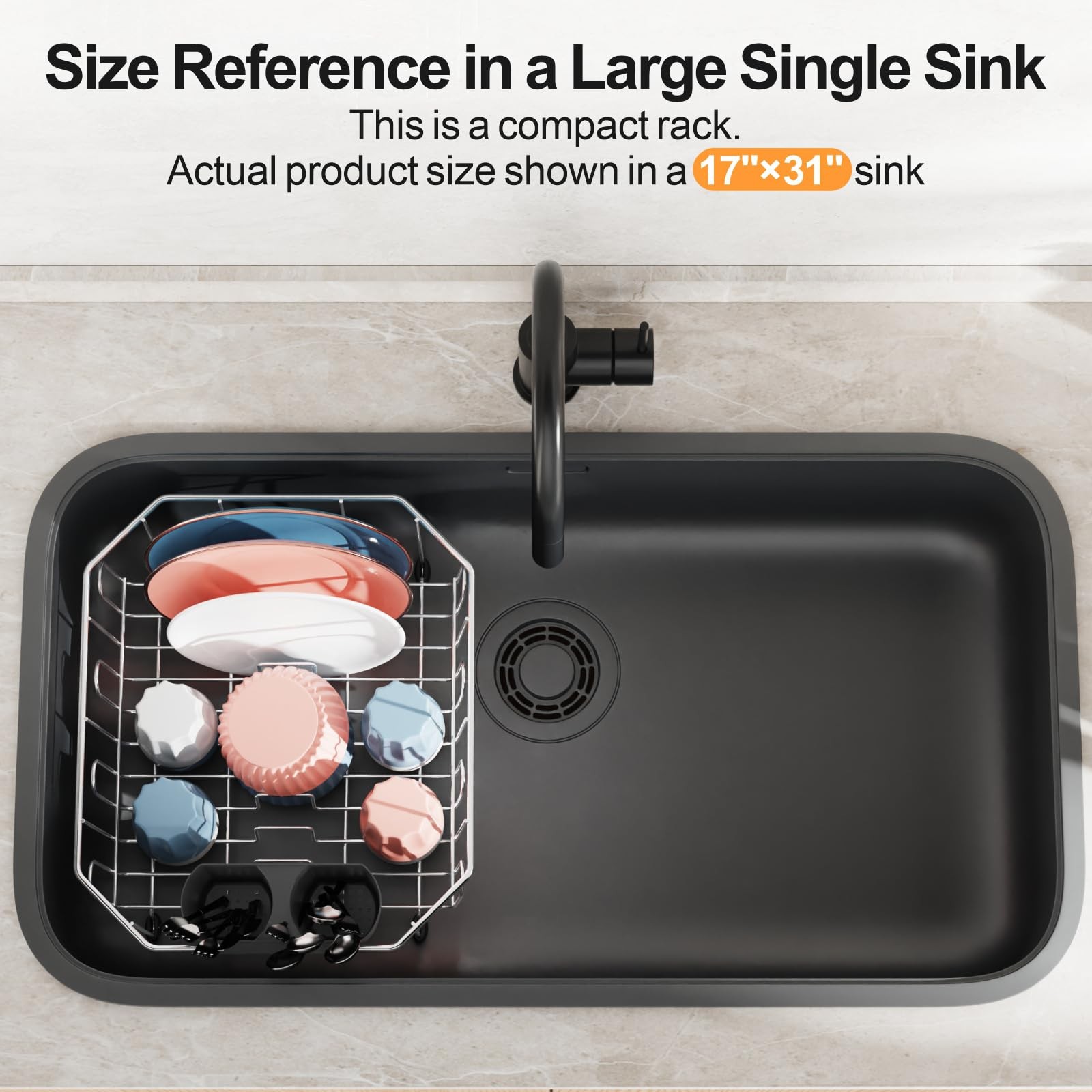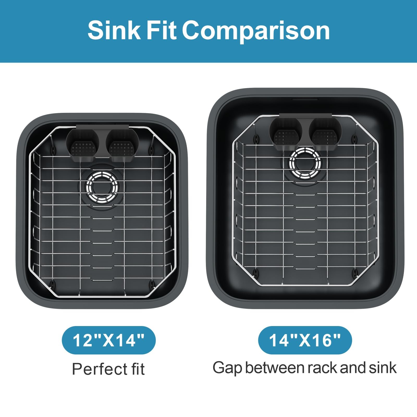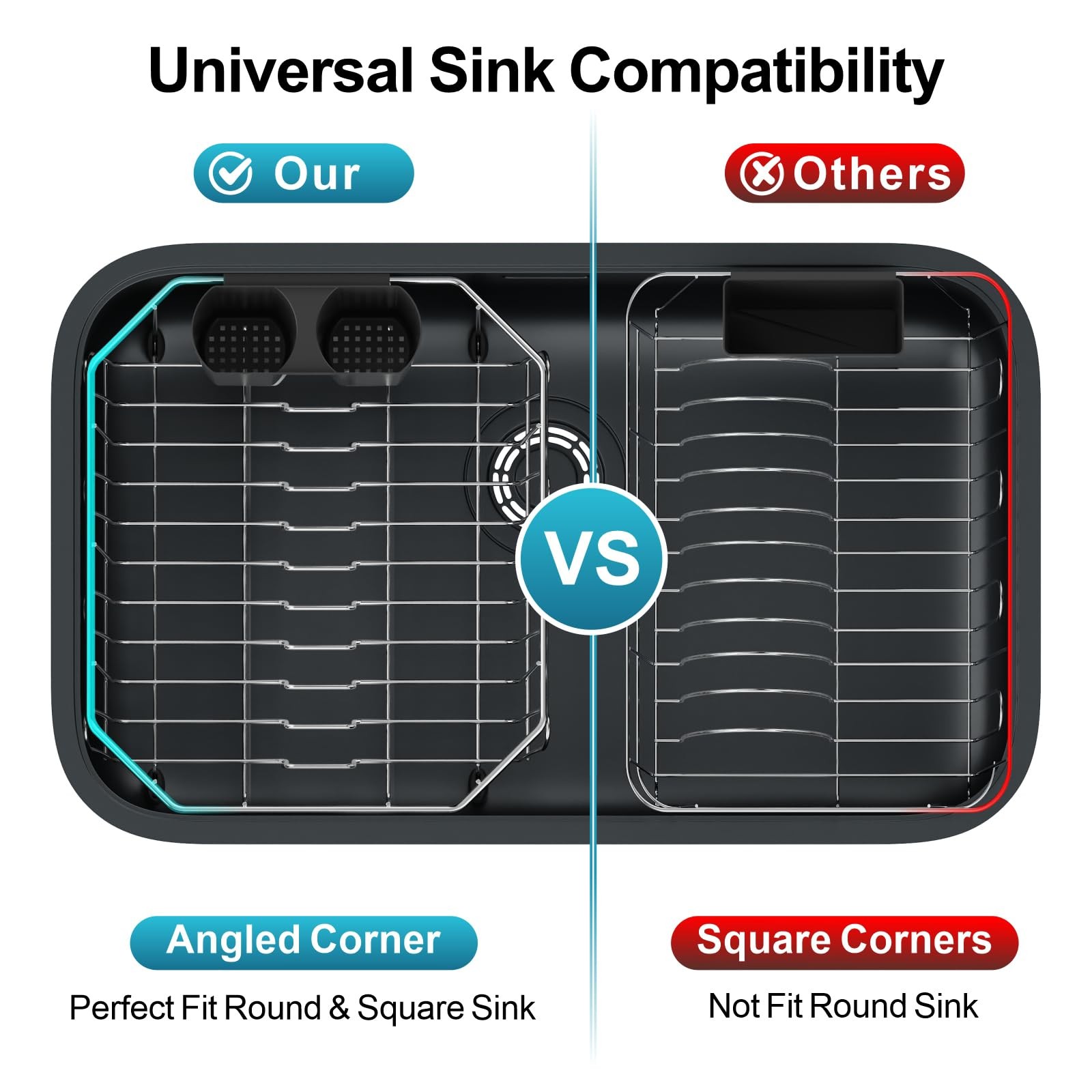 Universal Sink Compatibility: Angled corners fit both square and rounded sinks seamlessly; No sharp edges to scratch sink surfaces.