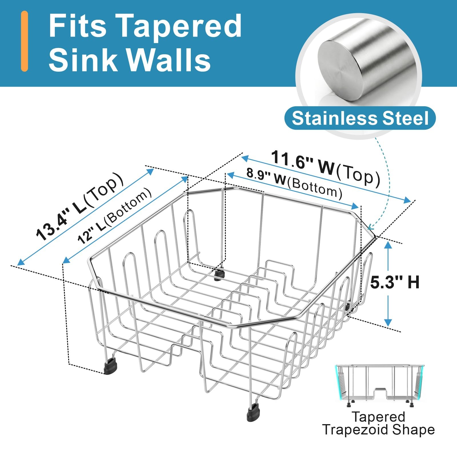 Tapered Design for Small Sink: Crafted with a tapered shape to match the natural contours of most sinks, best fit INSIDE standard 12"×14" double sinks or traditional 14"×12" round sinks. Ideal for RV, Camper, apartments, and small kitchens. Dimensions: 11.6" W x 13.4" L x 5.3" H, please measure your sink's internal size to ensure a great fit.