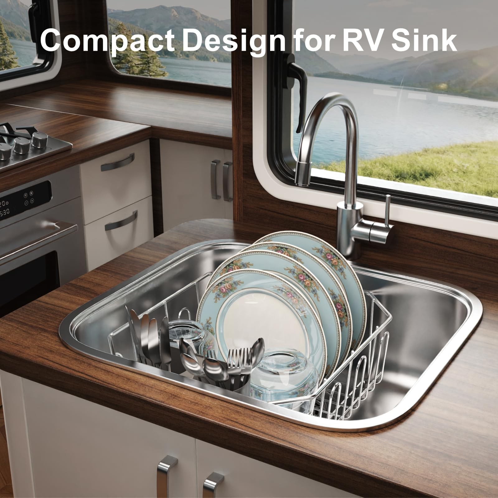A: Yes! It is designed for the smaller, deeper sinks typically found in RV or campers, best for standard 12"×14" double sink or a classic 14"×12" round sink. It fits inside sinks, keeping counters clear. The non-slip rubber feet also help keep it stable. Q: Is it for a large family?