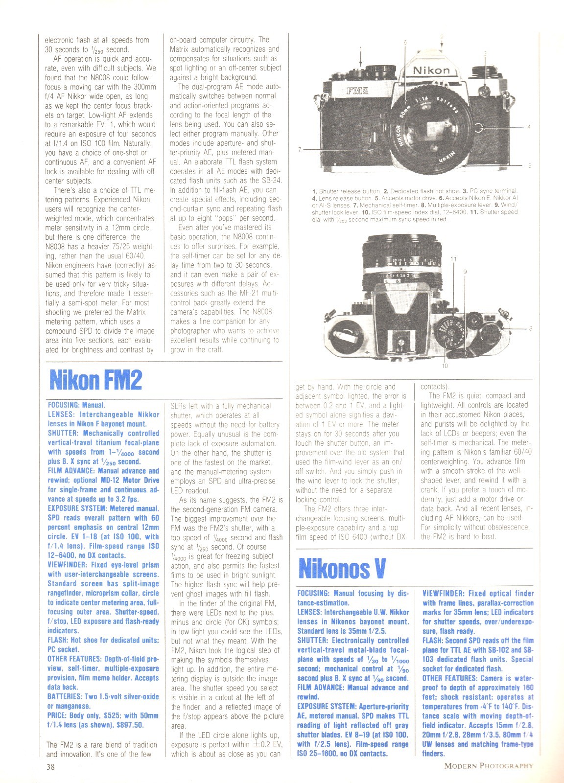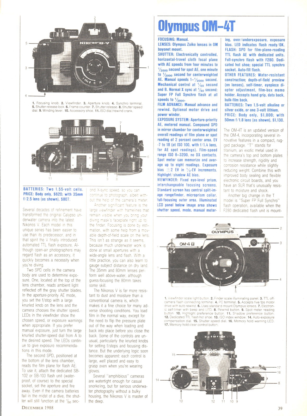 Nikon/Olympus - N8008/FM2/Nikonos V/OM-4T Camera - Original Magazine Report - 1988