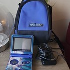 Nintendo Game Boy Advance SP Blue Handheld Console Charger Carrying Case