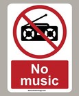 NO MUSIC WARNING STICKER SIGN CHOOSE SIZE STANDARD OR GLASS STICKER