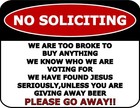 No Soliciting Charity, Politics, Religion, Estimates... Laminated Funny Sign
