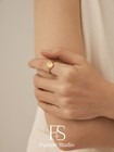 Woman 18k Gold Plated Stainless Steel Thin Texture Band Ring Joint Ring