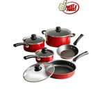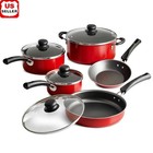 9-Piece Red Nonstick Cookware Set Stackable Design Easy Cleanup Dishwasher-Safe