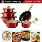12 Piece Cookware Set Nonstick Pots and Pans Home Kitchen Cooking Non Stick, Red