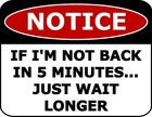 Notice If I'm Not Back In 5 Min Just Wait Longer Laminated Funny Sign