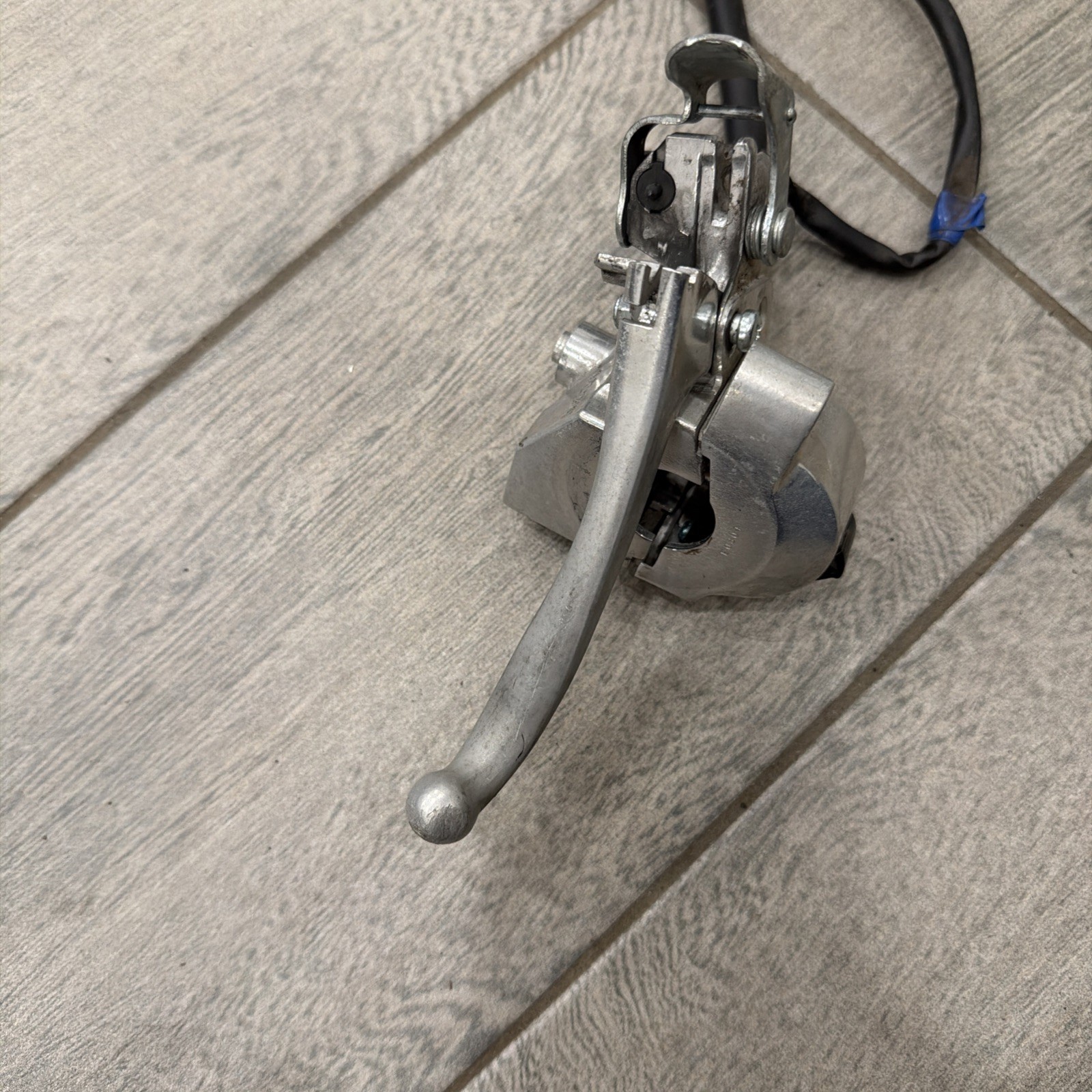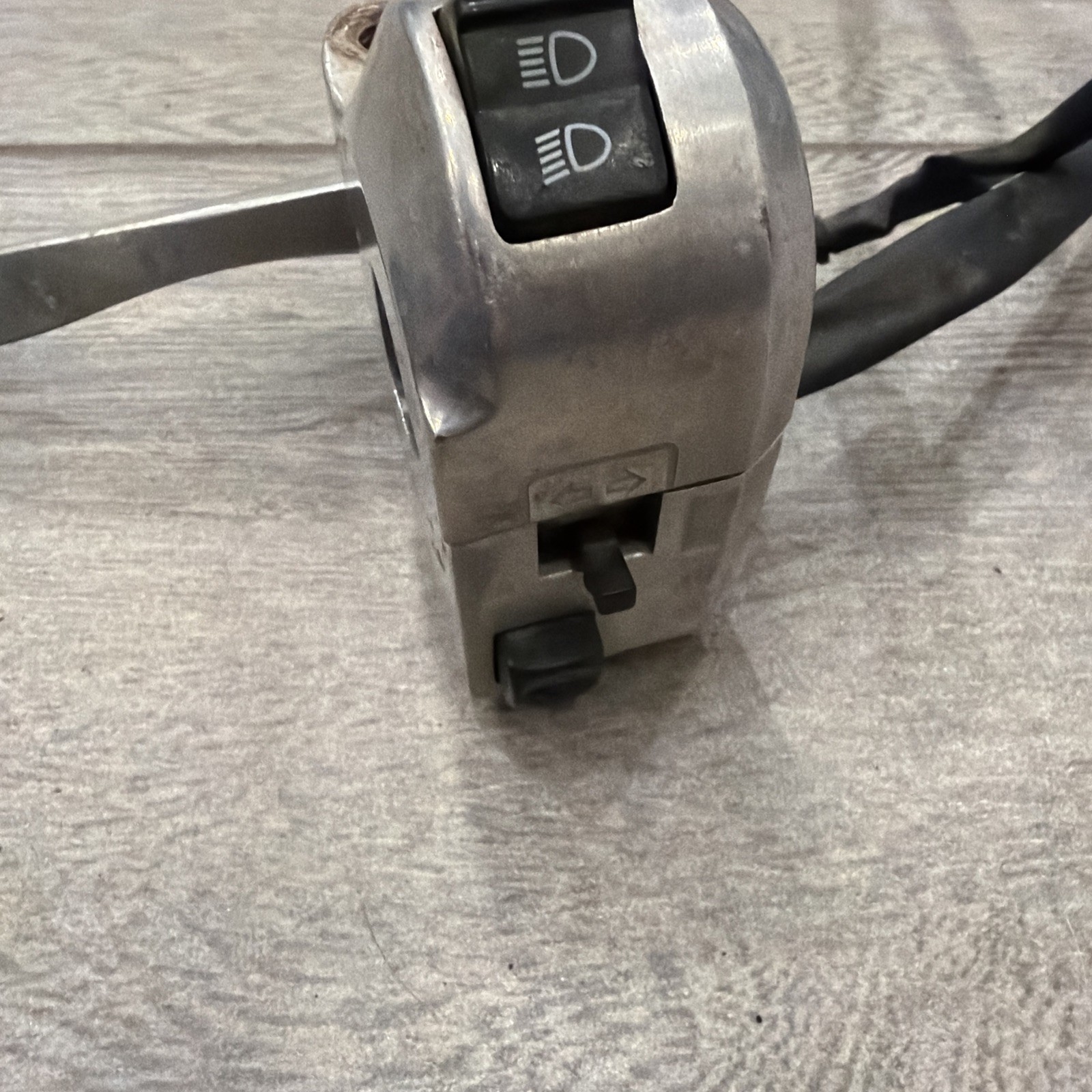 The OEM 2009 Honda Ruckus NPS50 Left Turn Signal Switch Horn Control (35020-GEZ-671) is a silver-colored switch assembly designed for controlling the turn signals on a Honda scooter. Manufactured by Honda specifically for their NPS50 model, this left-side switch provides easy and convenient control for the turn signal function. Perfect for maintaining the original look and functionality of your Honda Ruckus scooter, this OEM part ensures quality and compatibility with the vehicle.