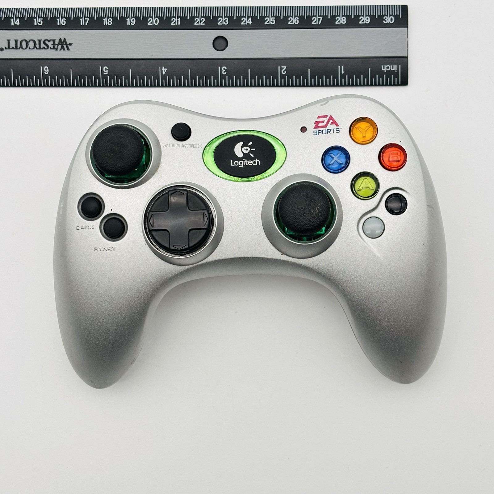 The OG XBOX Silver Logitech EA SPORTS Cordless Precision Controller Original GX3B12 is a wireless gaming controller designed for the Microsoft Xbox platform. It features a sleek silver color and is made of rigid plastic. This controller is compatible with the Microsoft Xbox and offers a unique EA Sports feature for enhanced gameplay. With a maximum number of players set at 1, this controller from Logitech is a reliable and high-quality choice for gaming enthusiasts looking for a precise and convenient control experience.