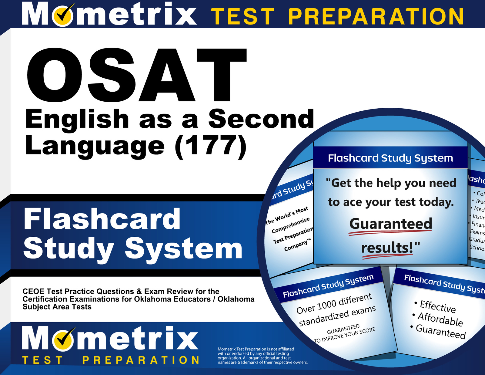 Taking the Oklahoma Subject Area Tests is a challenge and your results can make a huge difference when it comes to your future. If you do well on the exam, it can open doors and lead to wonderful opportunities. If you do poorly on the exam, you will find yourself with fewer options. You may have to put your plans for the future on hold, or even give up on them altogether. Preparing for your exam with our OSAT English as a Second Language (177) Flashcard Study System can help you avoid this fate and give you a big advantage when you take the test. Thousands of satisfied customers have relied on Mometrix Flashcards to help them pass their exams, and now you can too.