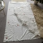 Cream Tablecloth Embroidered Poinsettia & Holly Design. Polyester 130x228cm