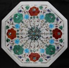 White Marble Coffee Table Top Semi Precious Gemstone Inlay Work Balcony Table