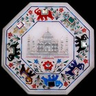 Taj Mahal Replica Inlay Work Side Table Top White Octagon Marble Coffee Table