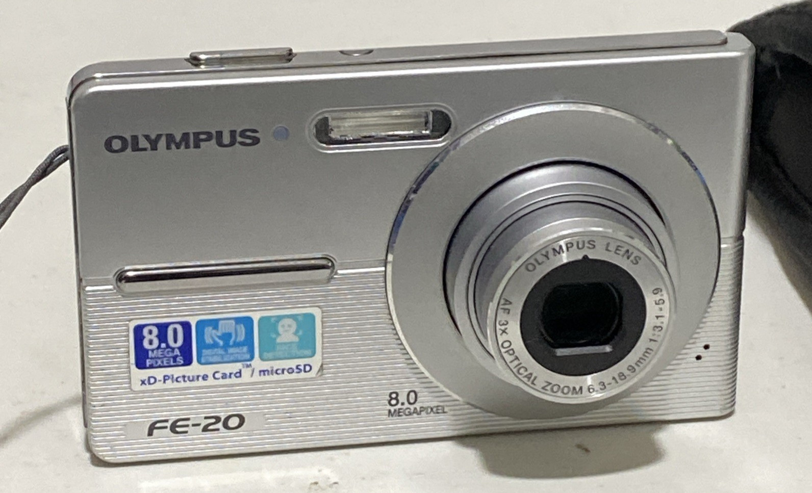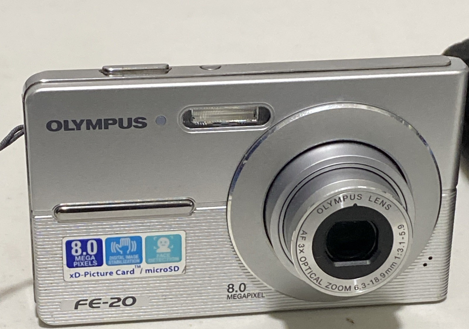 The Olympus Digicam FE-20 is a sleek silver compact digital camera with a maximum resolution of 8.0 MP. It features a 3x optical zoom, 4x digital zoom, and a 2.5-inch screen for easy viewing. This camera also comes with built-in flash and auto-focus capabilities, making it perfect for capturing high-quality images. The camera does not come with a charger but has a new battery included, ensuring you can keep shooting for longer periods. With a maximum aperture of f/2.8, this Olympus Digicam FE-20 is a reliable choice for photography enthusiasts.