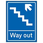 Way Out Arrow Up Stairs Left Blue Safety Sign For Visitors